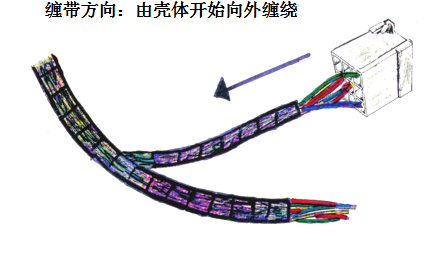 膠帶花纏指使用膠帶連續對線束進行裹纏,每圈的裹纏間隙一般在 10-25mm 范圍內,中間不重疊覆蓋。